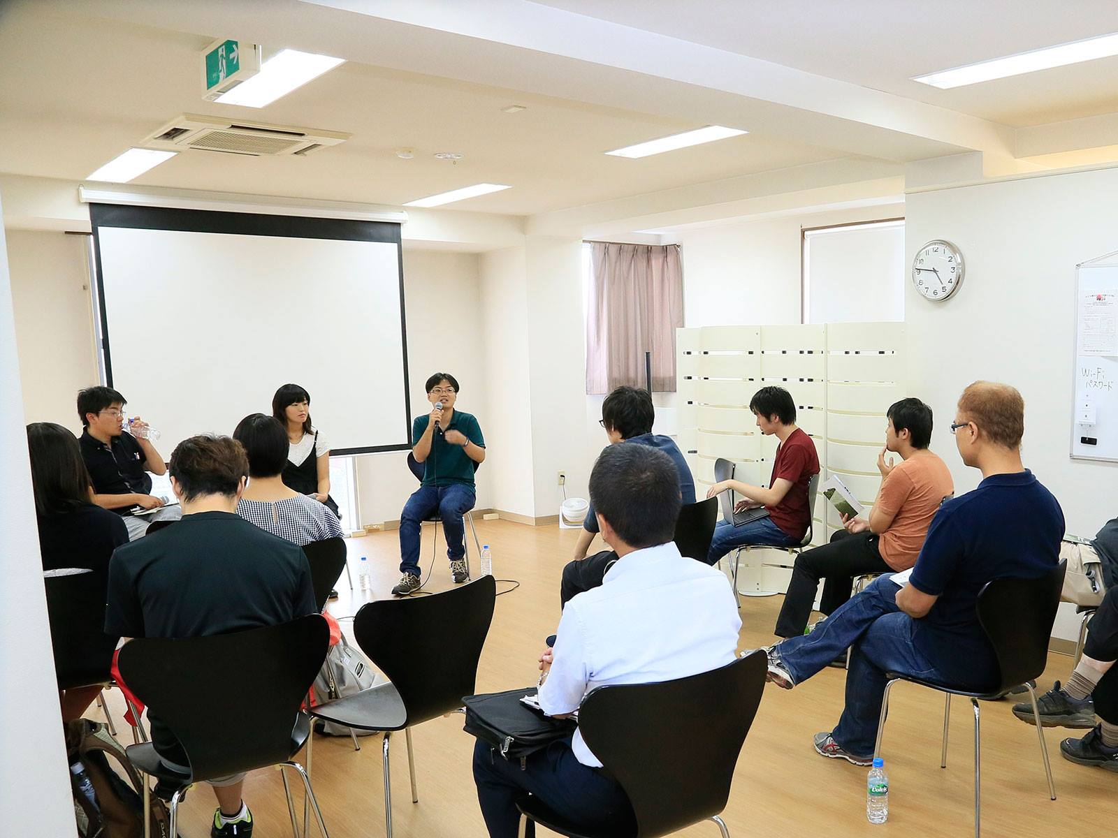冒頭でマチノテ誕生のあれこれをスライドでお話ししました。ファシリテーターの岩井さんに「このプロダクトはもっと可能性を秘めているはず」という意図での突っ込んだ質問を受けて答えにちょっと困る山田(笑)