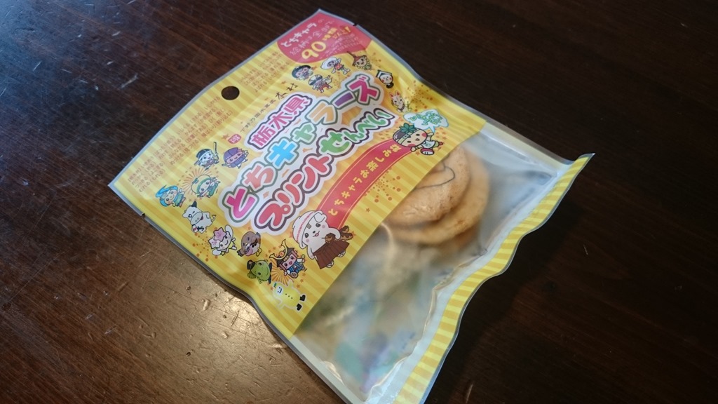 先日、うちの子供たちへとお菓子を頂きました。袋を見てびっくり「栃木県 とちキャラーズ プリントせんべい」とパッケージにデザインされていて、栃木県民おなじみのキャラクターが勢揃い。